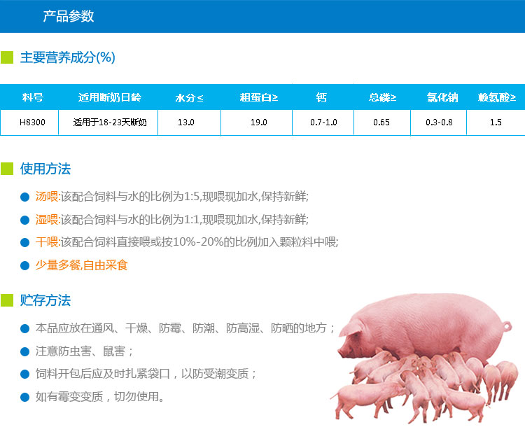 格立宝“H8300”是由浙江格立宝饲料科技有限公司运用国际的乳猪营养科研成果,根据乳猪的生理特点和营养需要,办公司精选原料,使用先进的超微粉碎生产设备和加工工艺而开发的新一代水溶性乳猪教槽配合饲料(粉状)